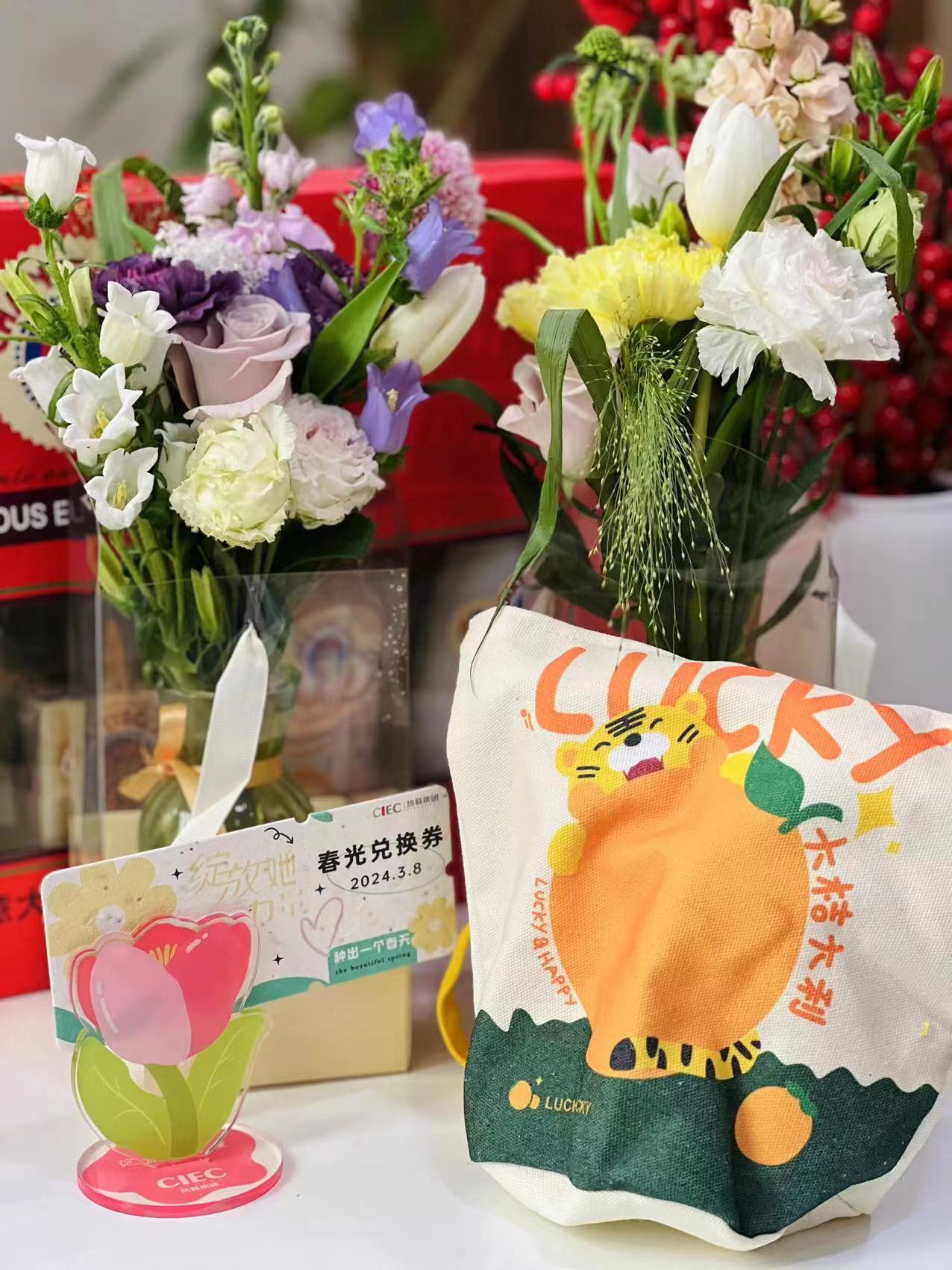今天一早,熱聯(lián)集團的“男神們”為女員工們送去了節(jié)日花束、禮物和祝福。“這個兌換券居然還能種植出花朵,感覺春天的氣息更加濃郁,感覺非常有新意?!币晃慌畣T工表示。